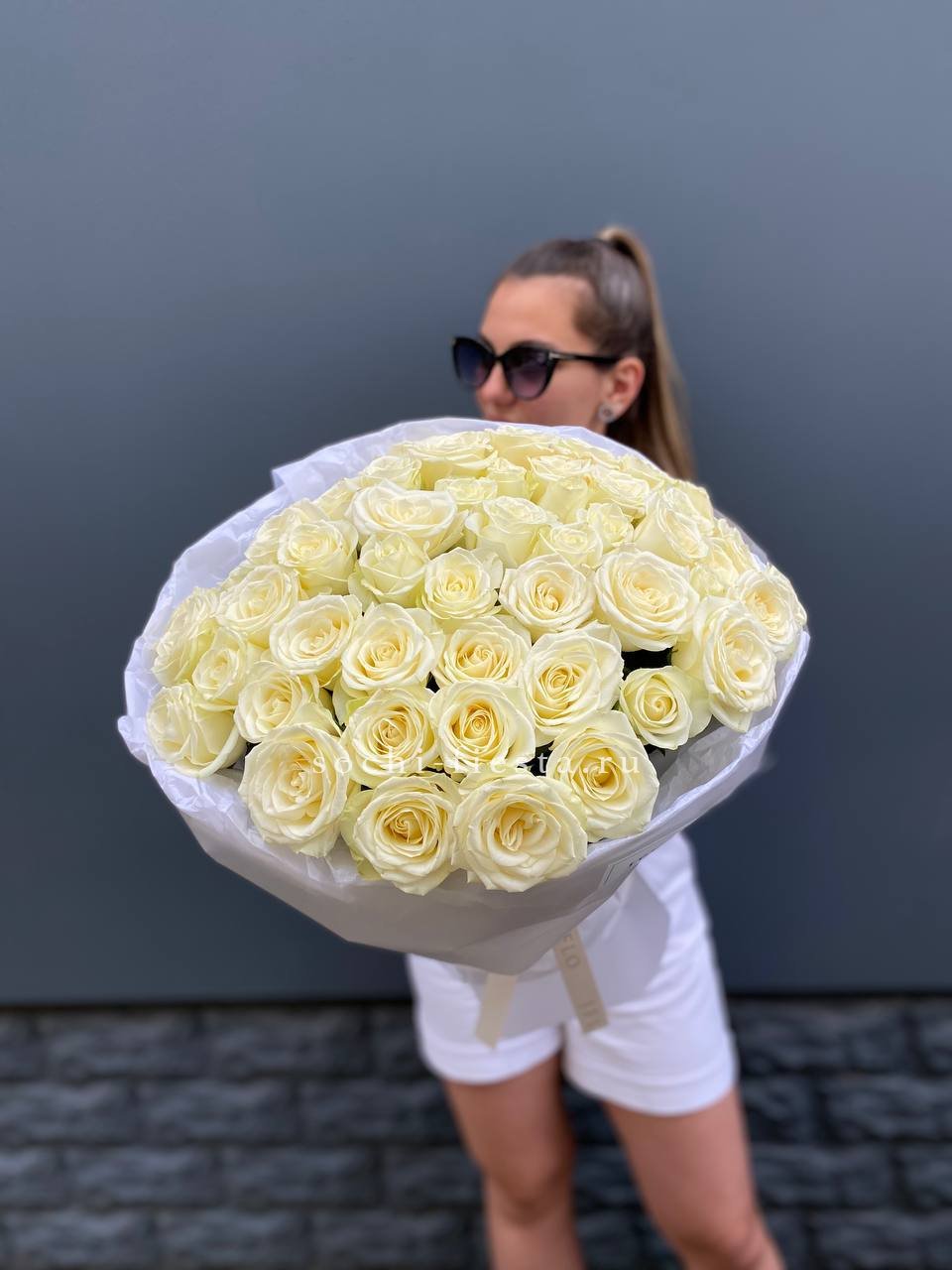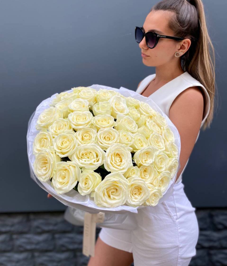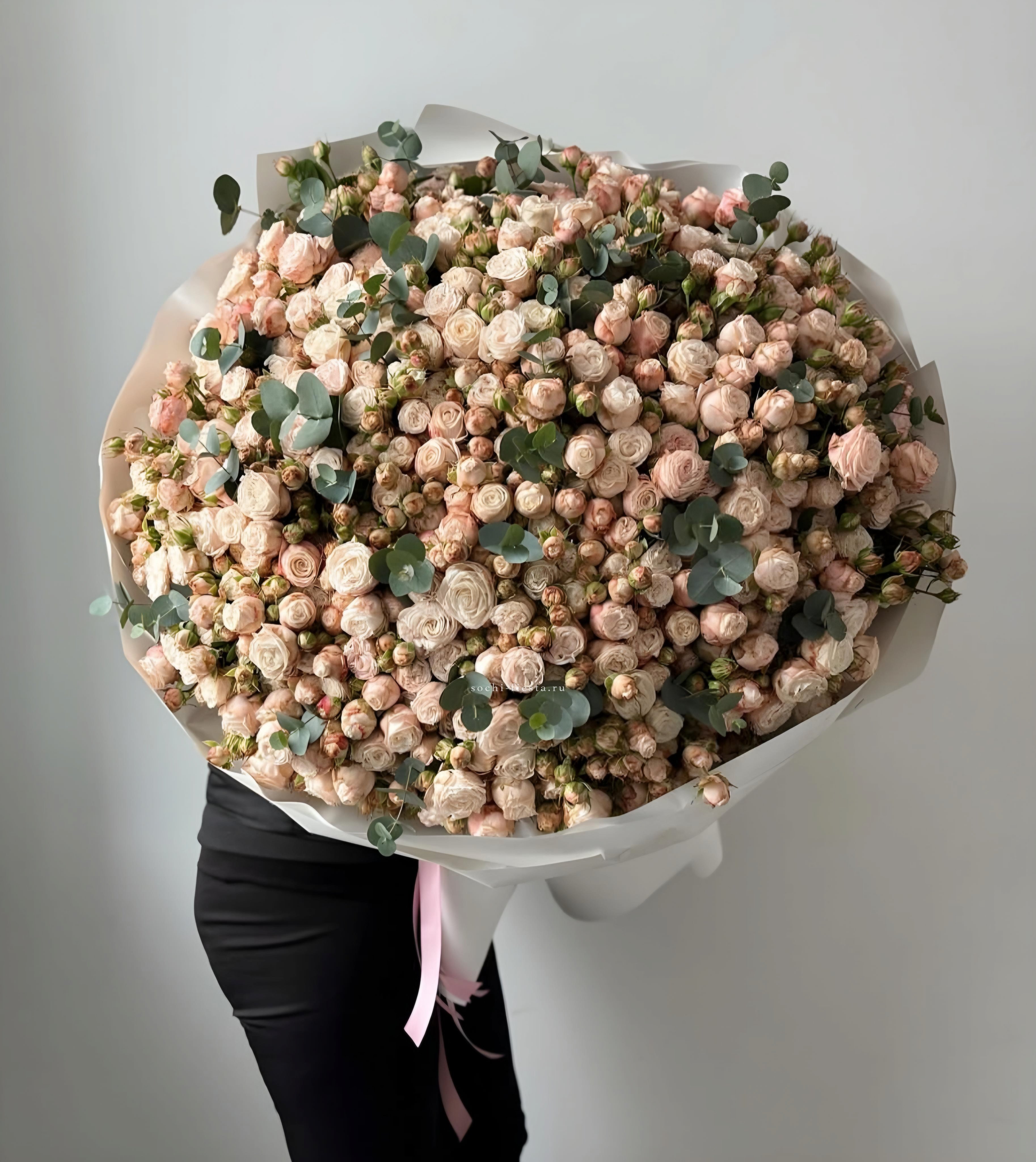 Сто одна голландская роза в букете — это история о масштабе и впечатлении. Объем композиции наполняет комнату и мгновенно притягивает внимание своим присутствием.