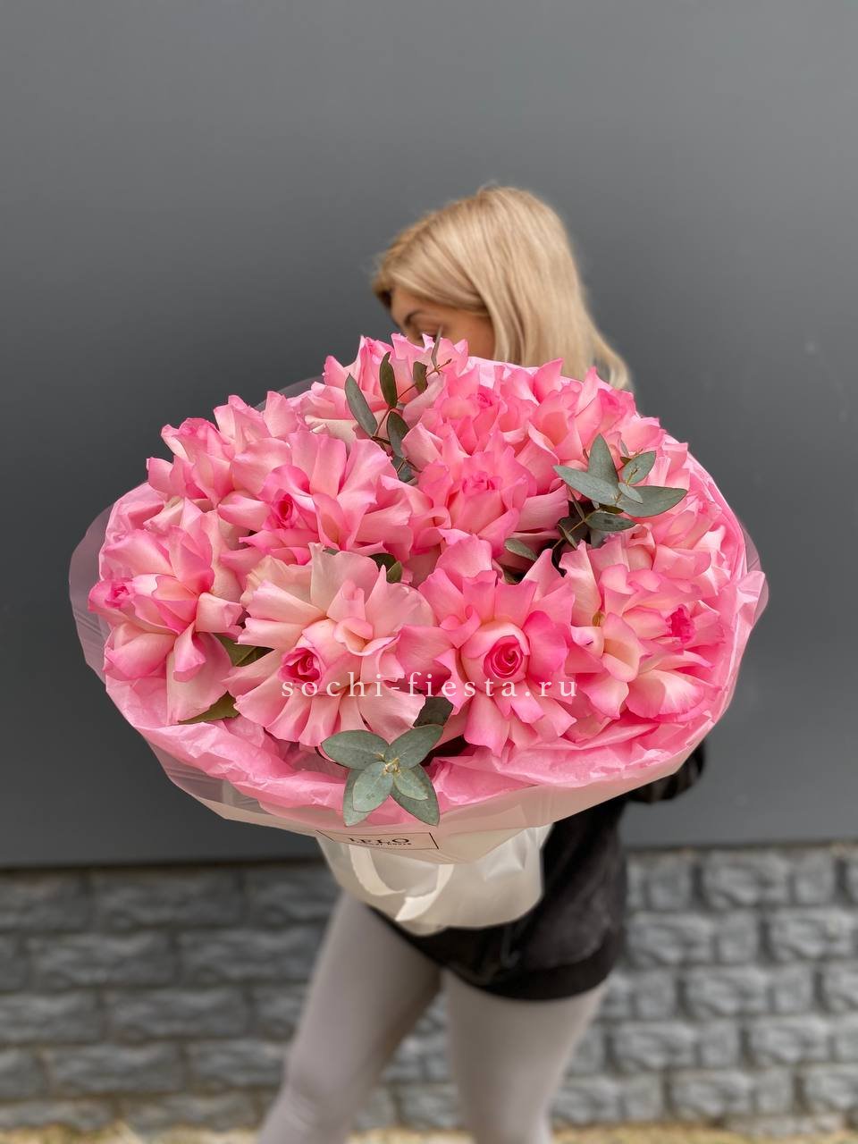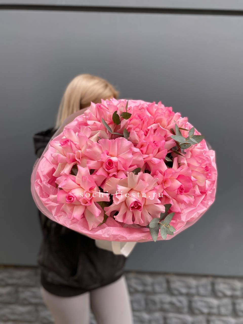 101 кустовая пионовидная роза, лента, дизайнерская упаковка.