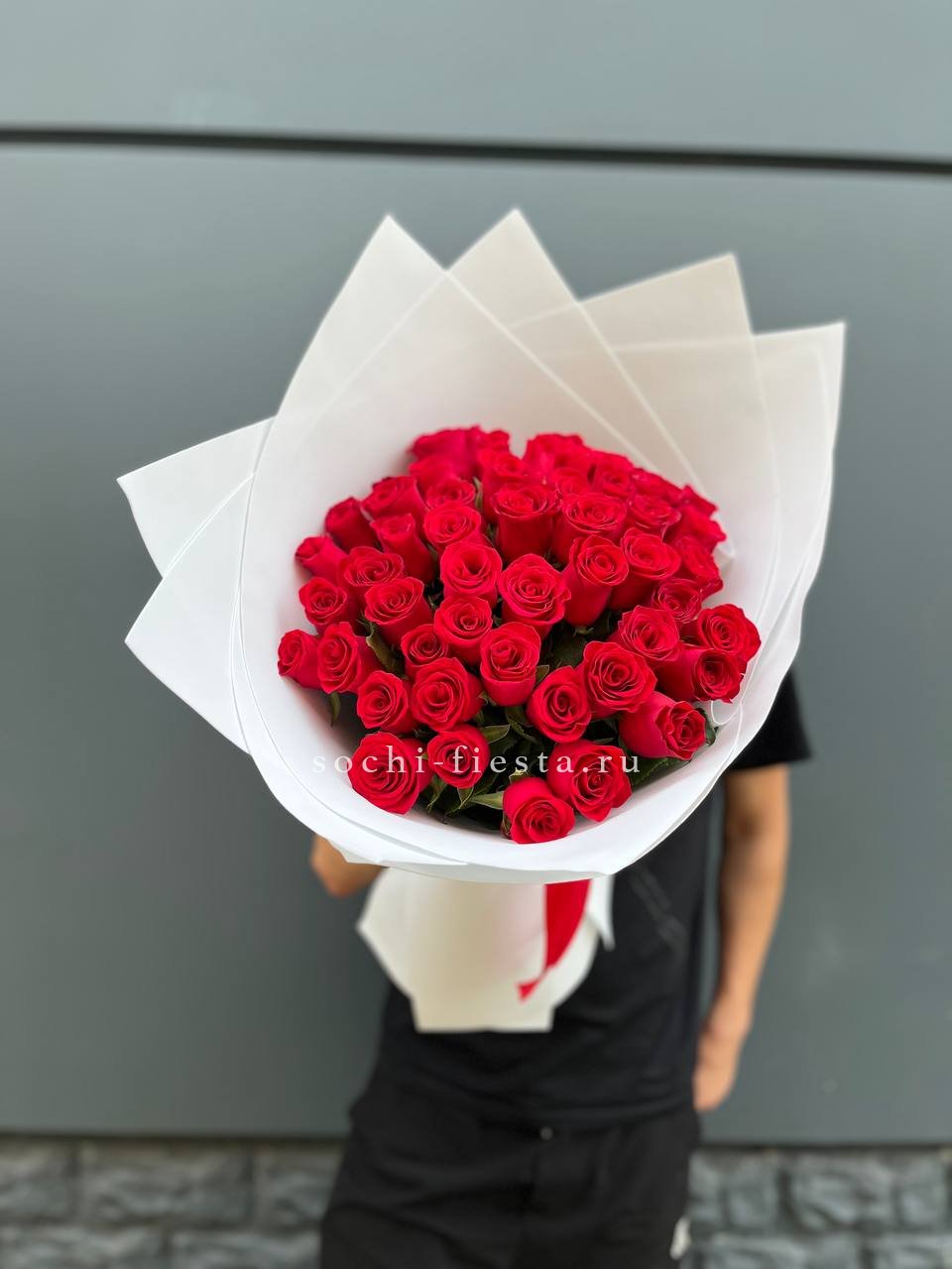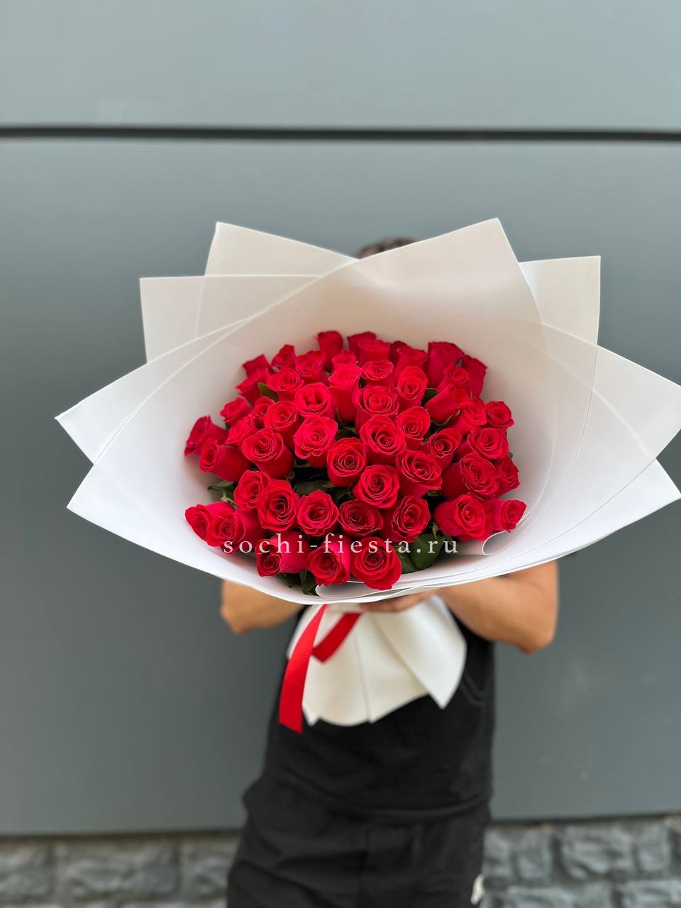 Пятьдесят один тюльпан собран в плотный монохромный букет, где каждый бутон держит форму и направление. Яркая весенняя палитра создаёт мощное визуальное присутствие в любом пространстве.