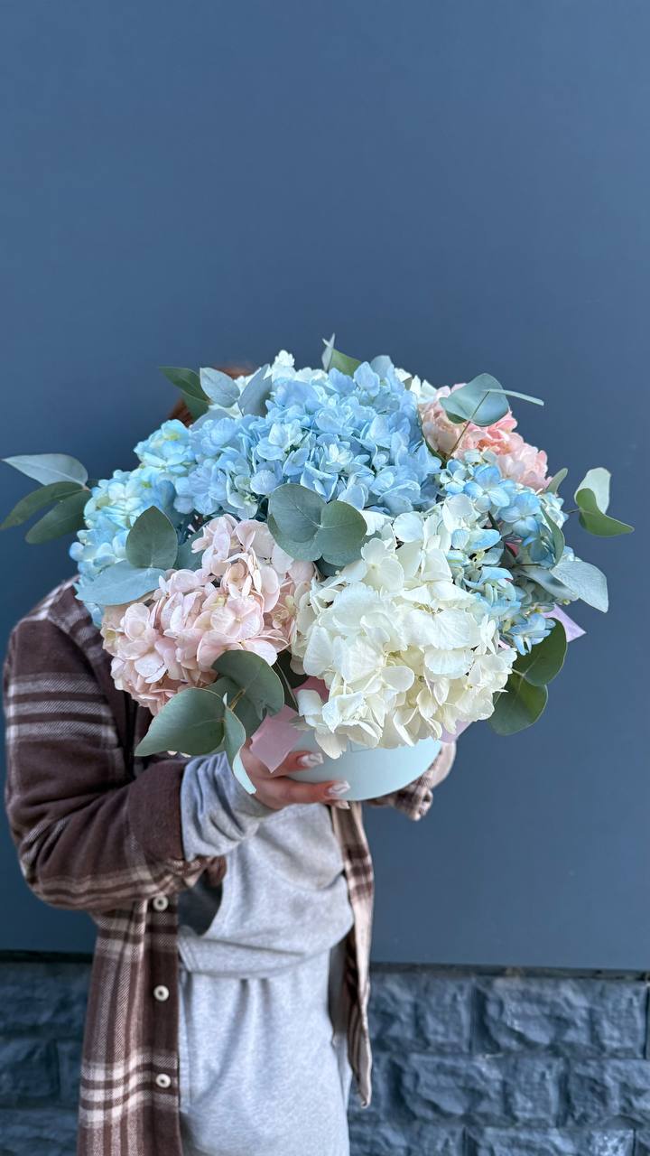 гортензия - 3 шт., лента, дизайнерская упаковка.