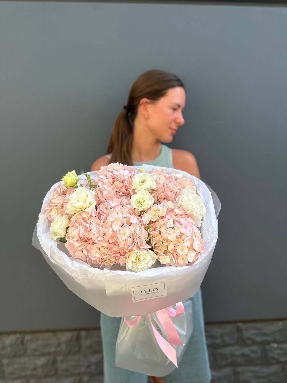 Актуальный и модный букет в трендовой палитре. Сочетание нежно-розовых и белых оттенков с матовой упаковкой отвечает последним тенденциям флористики. Легкость, воздушность и тщательно подобранный состав делают эту композицию идеальным выбором для стильной девушки или современного торжества. Безупречный вкус в каждой детали.