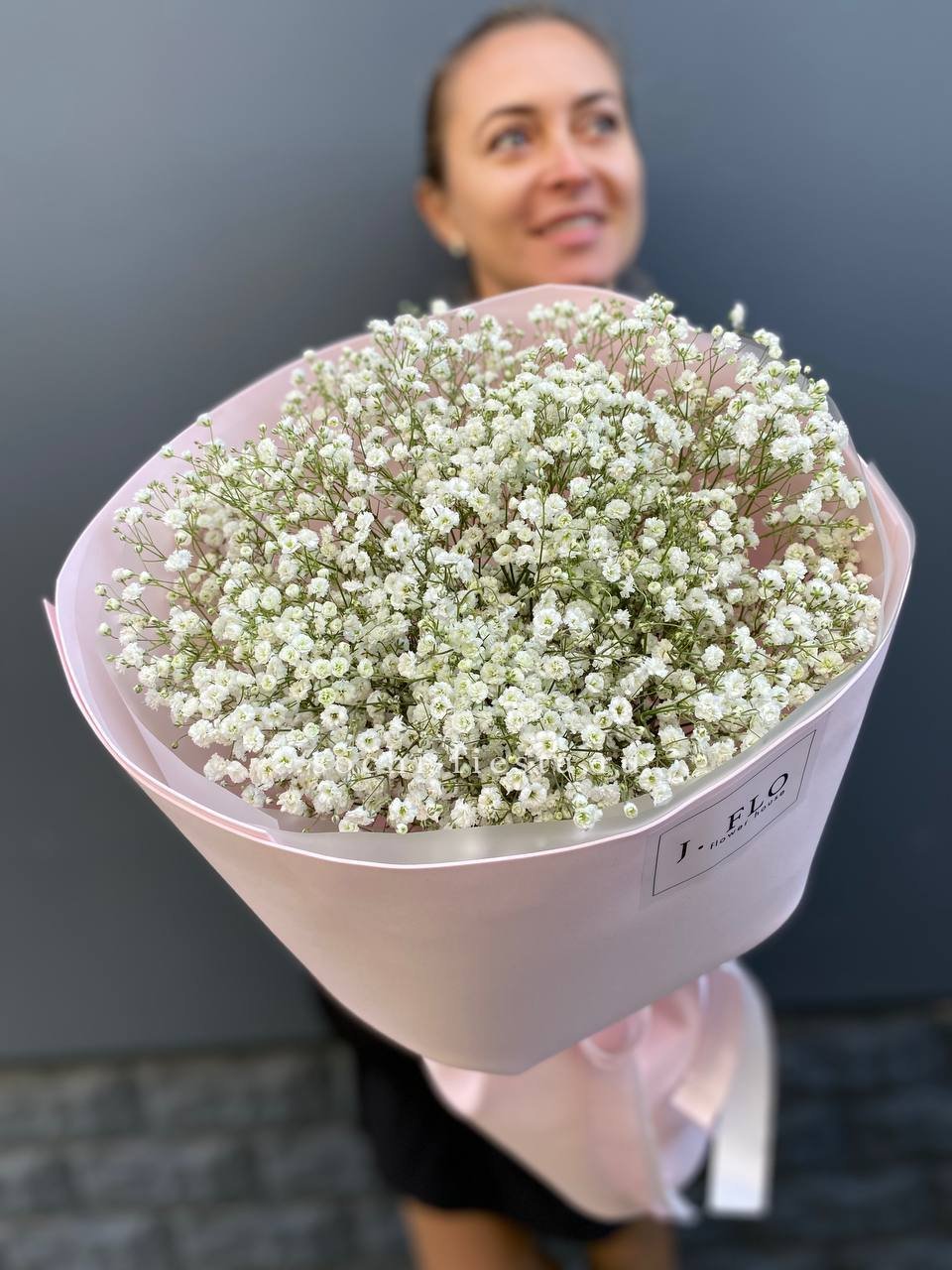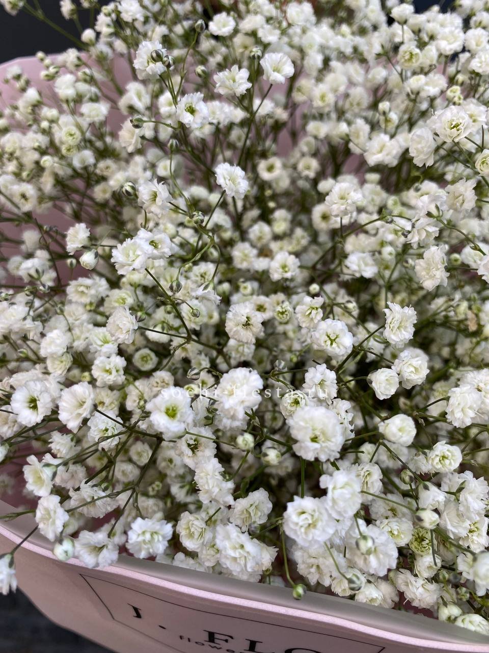 Воздушное облако из мелких соцветий создает объёмную текстуру и мягкий силуэт. Двадцать пять веток гипсофилы собраны в пышную композицию, которая наполняет пространство лёгкостью и свежестью.