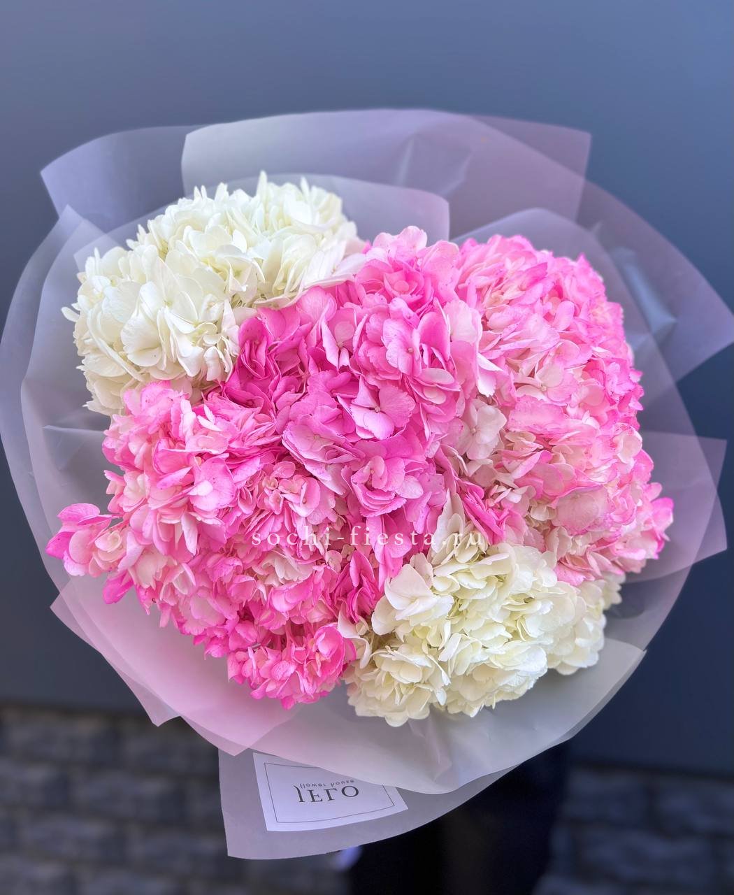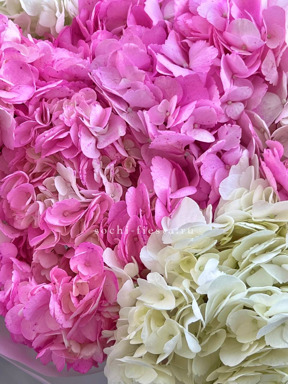 гортензия (розовая, голубая) - 7 шт., лента, дизайнерская упаковка.