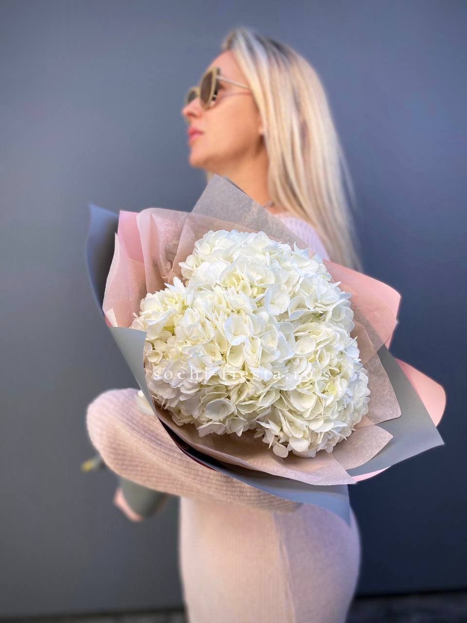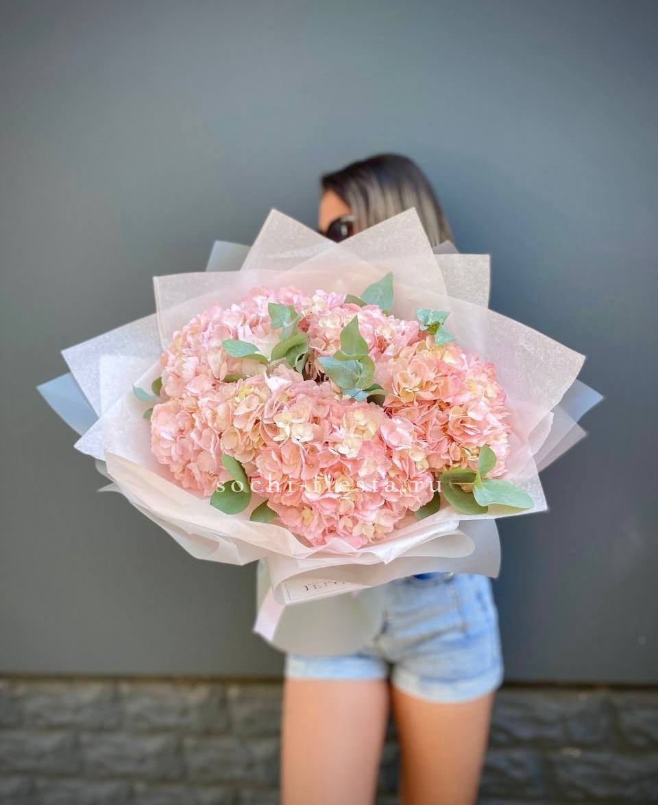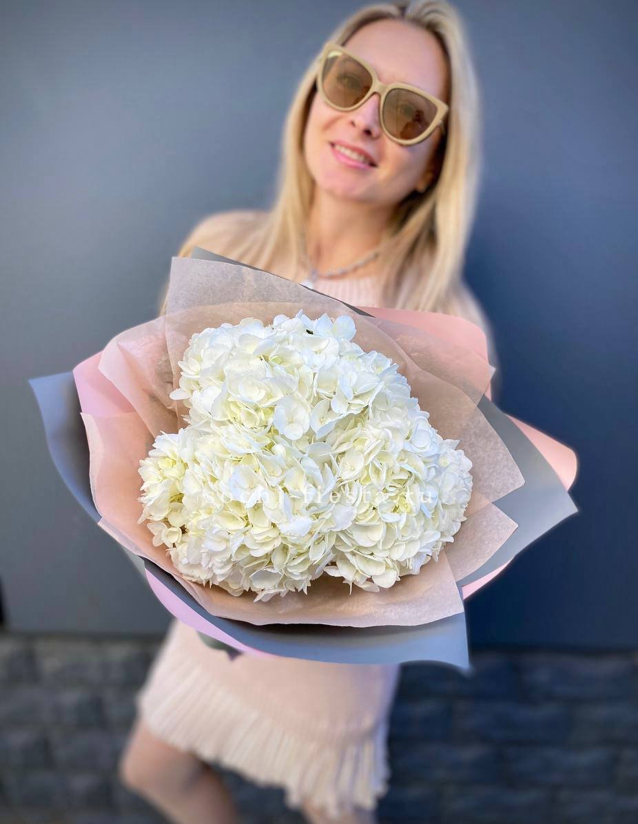 Для заказа товара "Букет из трёх белых гортензий" с доставкой в Таганроге нажмите в корзину