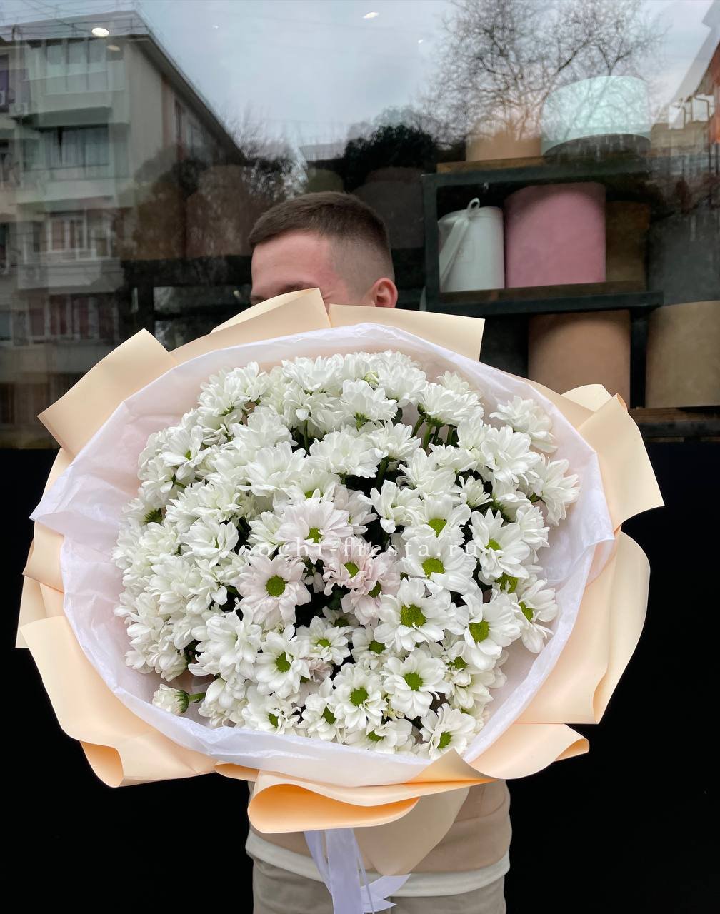 хризантема кустовая - 9 шт., лагурус, фоамиран, пленка,  лента.