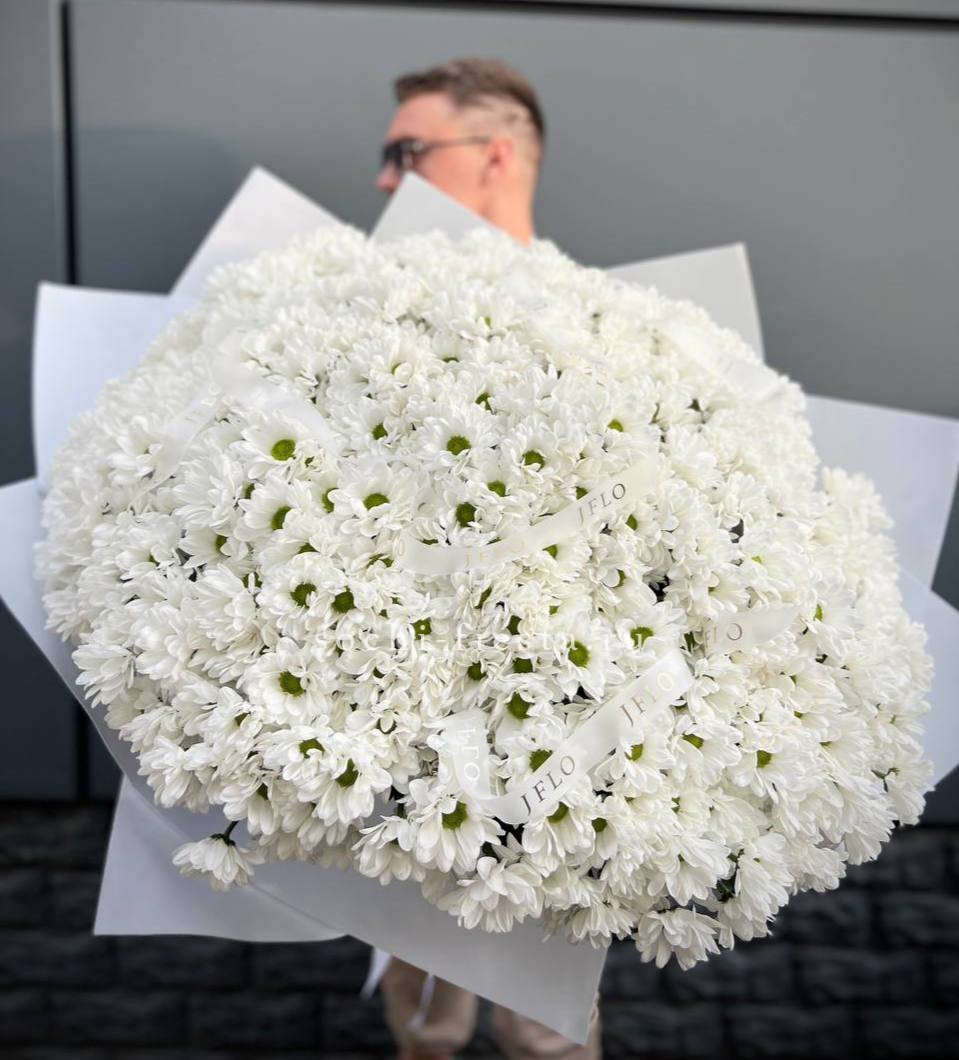 хризантема одноголовая - 9 шт., лента, дизайнерская упаковка.