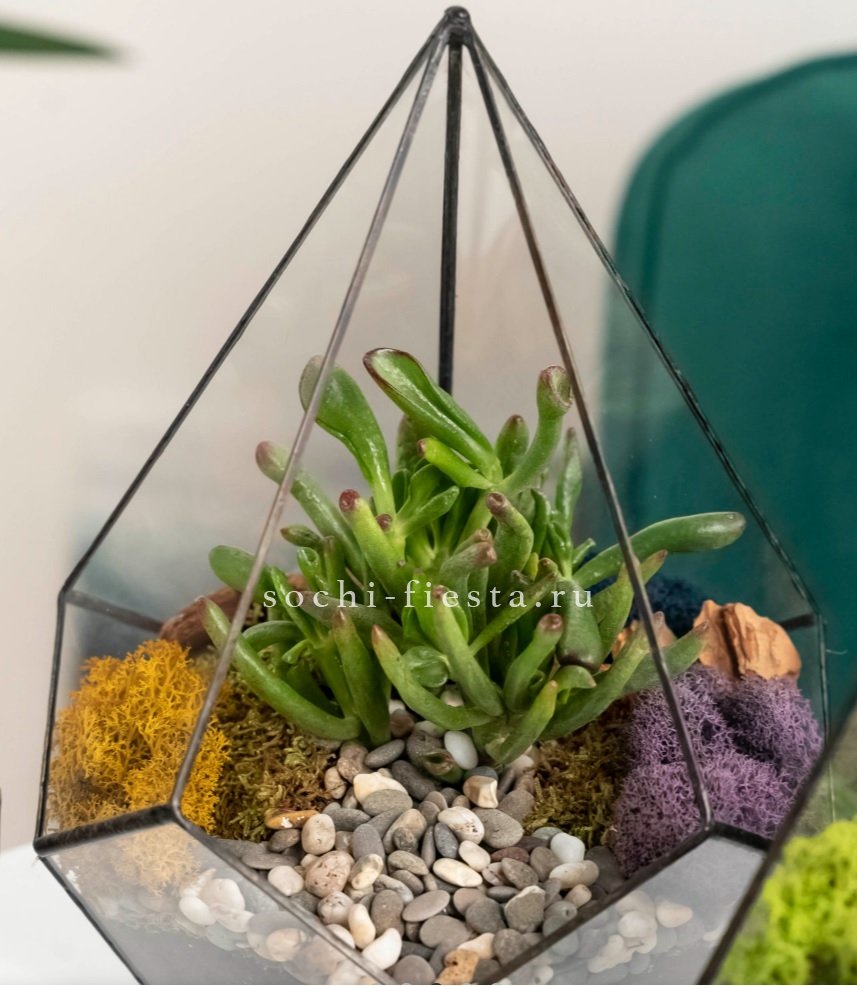 флорариум в кашпо Капля идеален для подарка искушенным и практичным личностям. Растение неприхотливо в уходе, композиция стильно смотрится в любом пространстве:)