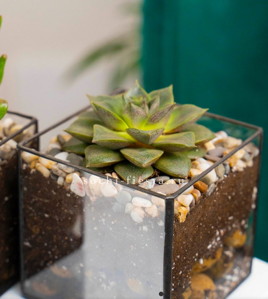 Флорариум Кубик с суккулентом Каменная роза