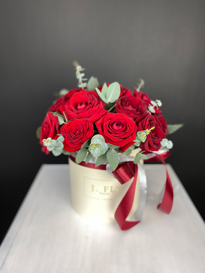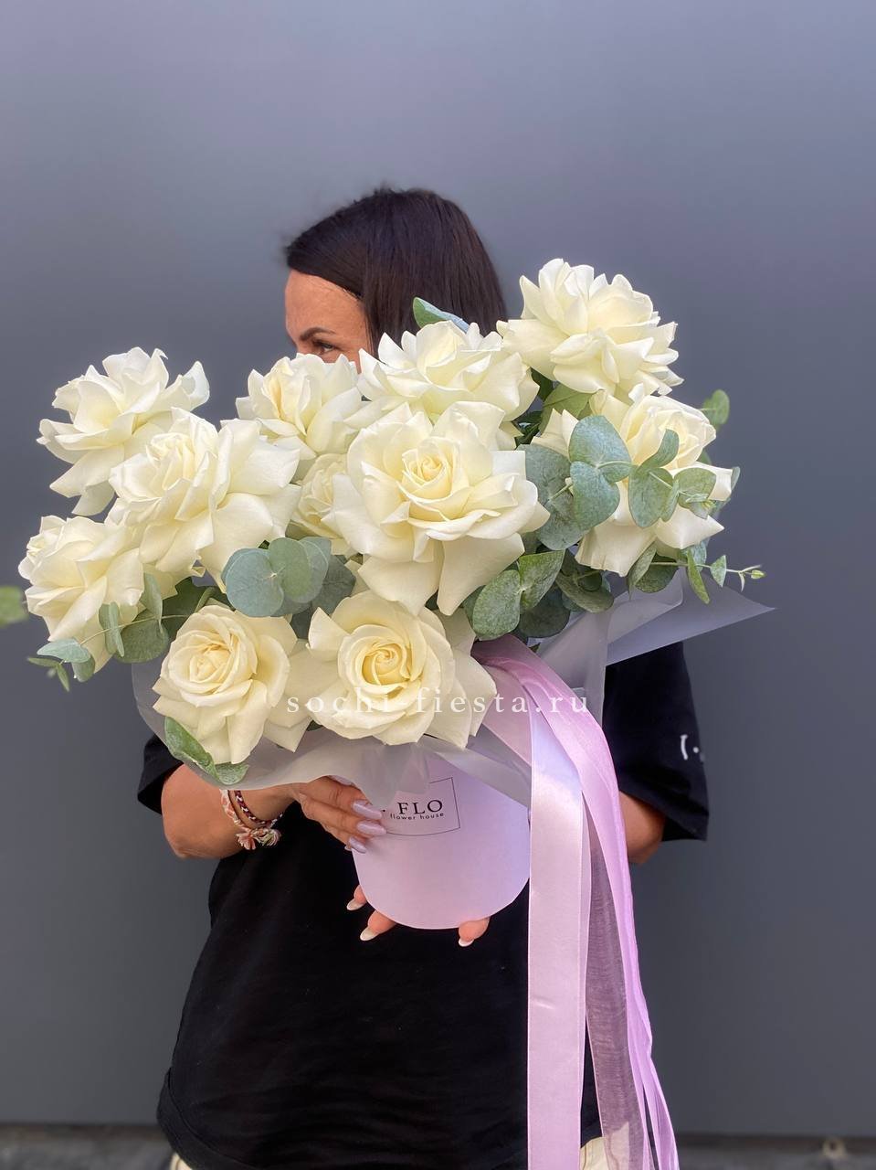 розы, протея, диантус, гербера, эустома, лилия, бокс 20.