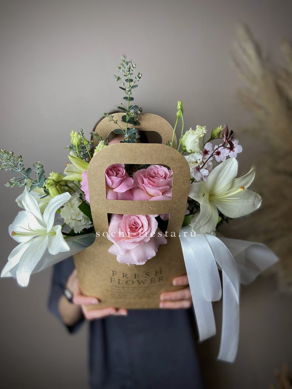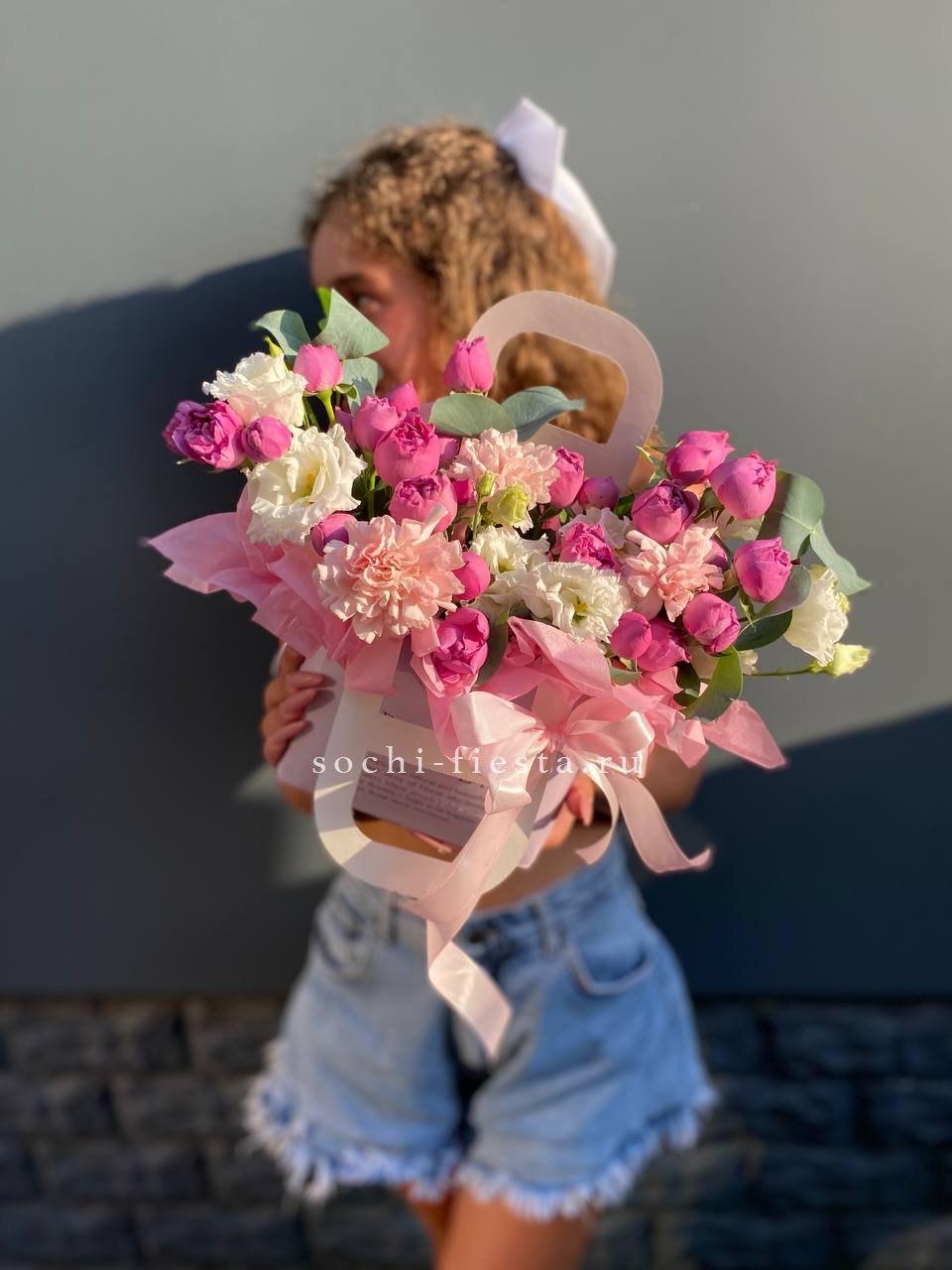 Для заказа товара "Сумочка с кустовой розой и диантусами" с доставкой в Таганроге нажмите в корзину