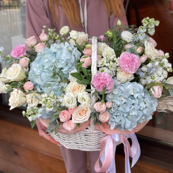 Доставка корзин в Таганроге — специальный транспорт или курьер с лотком. Флорист фотографирует готовую корзину перед отправкой и высылает клиенту фото для подтверждения. Самовывоз из студии — популярная опция: клиент видит готовую работу и везёт корзину сам. Флорист помогает с упаковкой для транспортировки в машине.