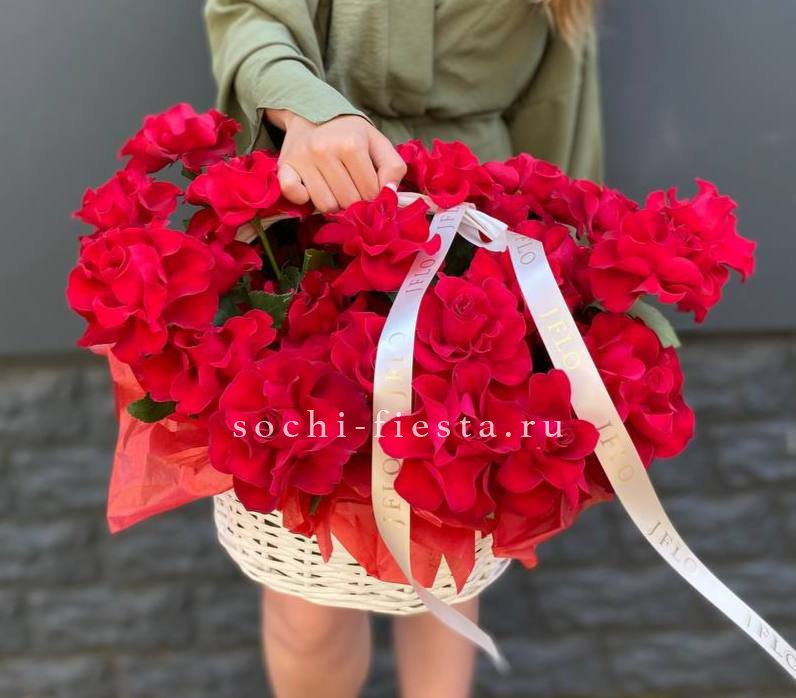 Для заказа товара "Красные французские розы в корзине" с доставкой в Таганроге нажмите в корзину