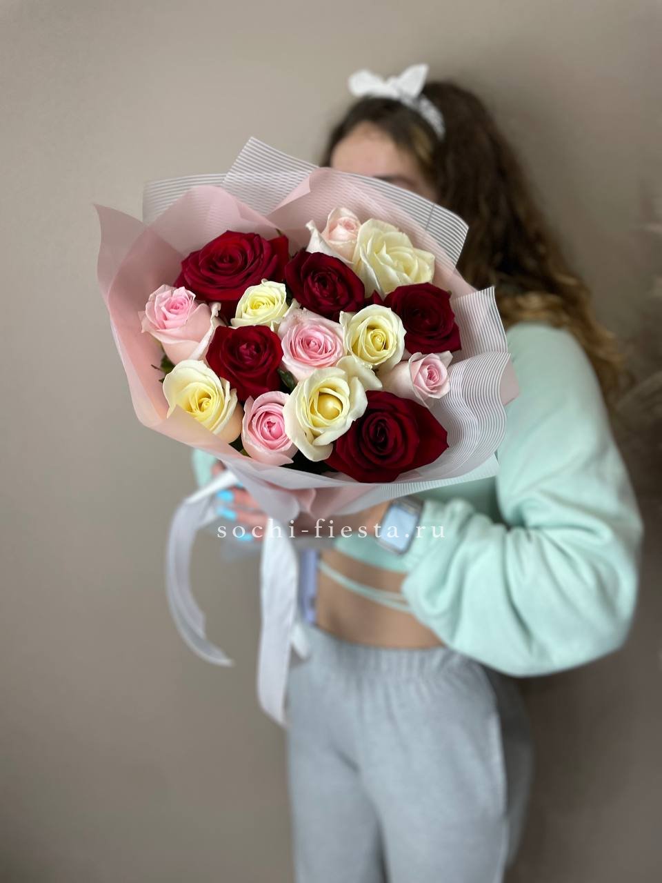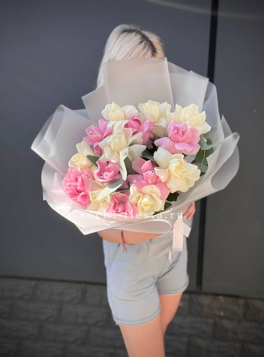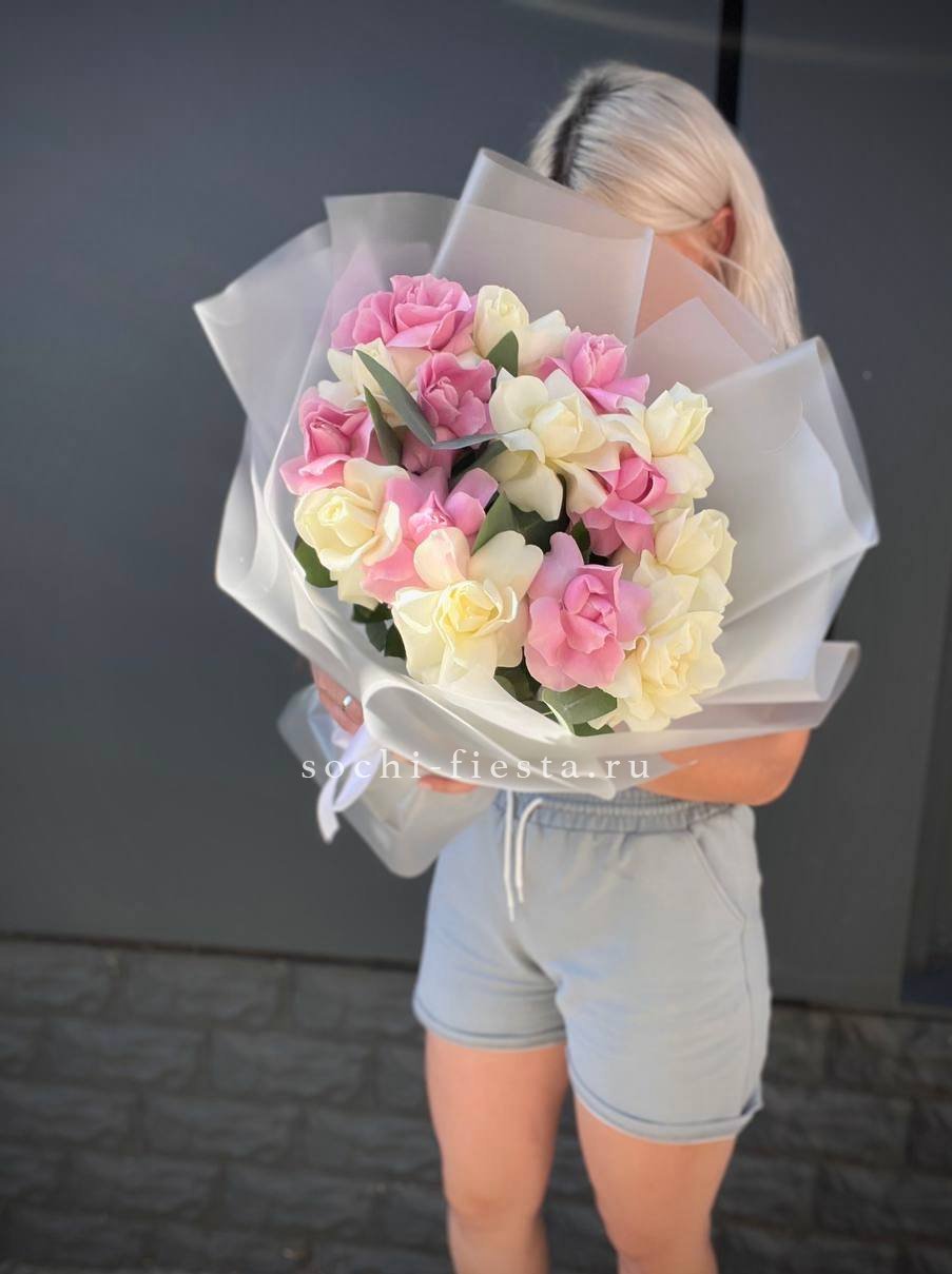Для заказа товара "15 бело-розовых роз" с доставкой в Таганроге нажмите в корзину