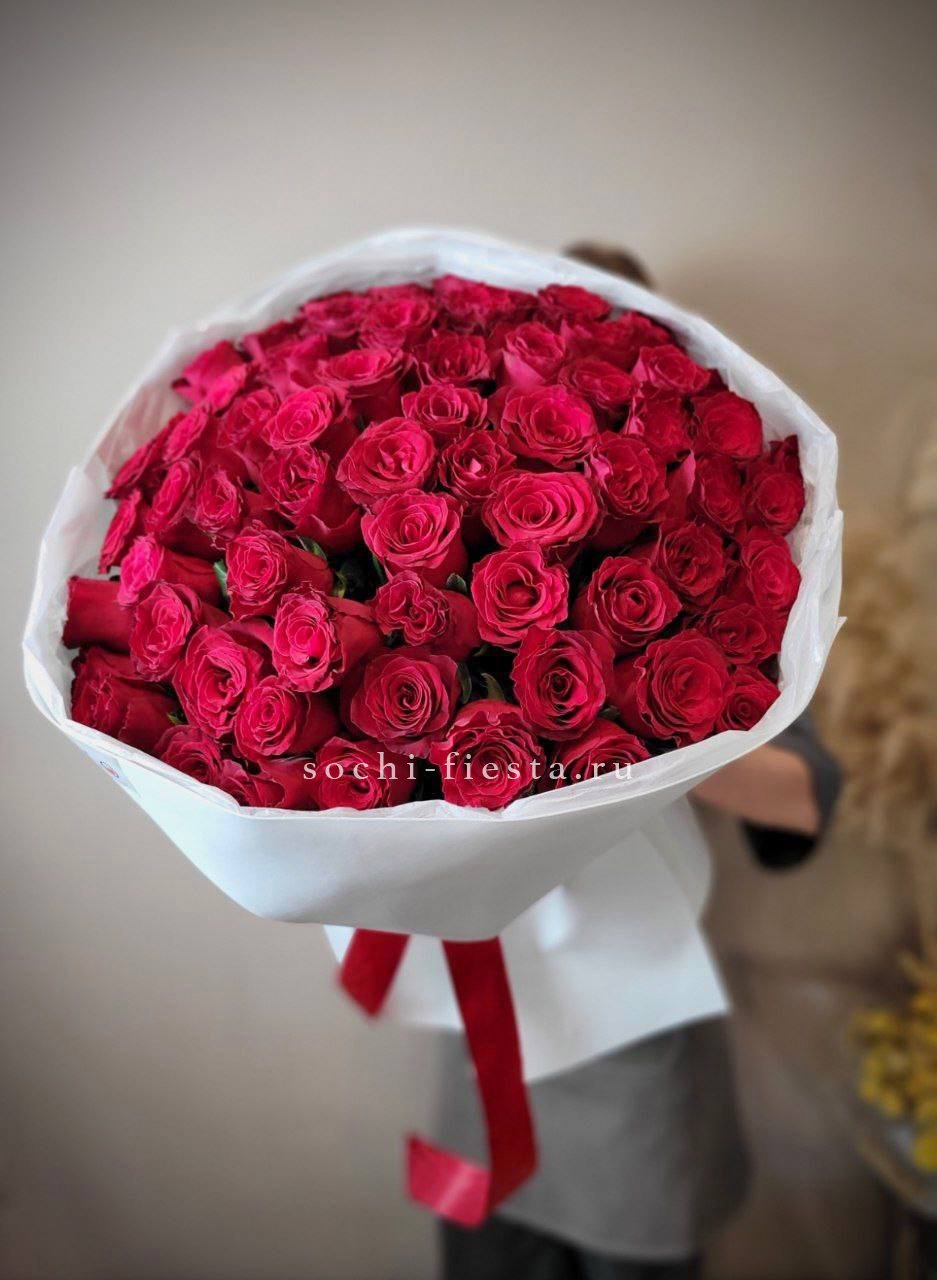 25 красных роз, лента, упаковка на выбор.