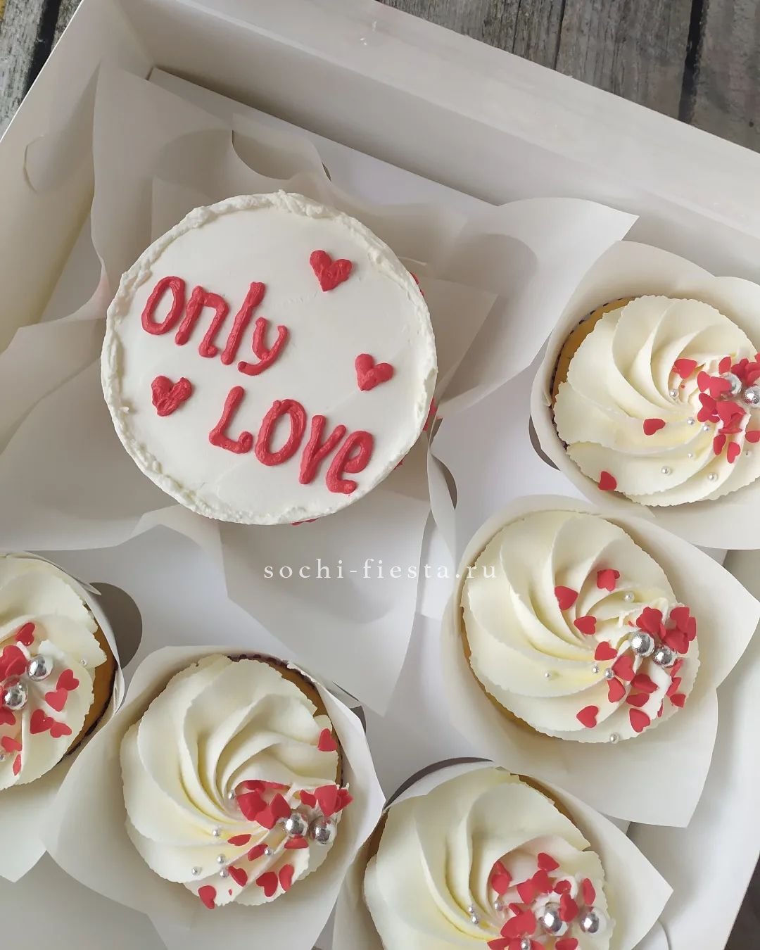 вкуснейший дизайнерский набор капкейков ручной работы "Lovely" Начинки на выбор: шоколадные с солёной карамелью и арахисом, ванильные с ягодной начинкой. Упаковка и декор включены в стоимость. Наличие начинки необходимо уточнять в день заказа. Возможны различные дизайны, надписи.